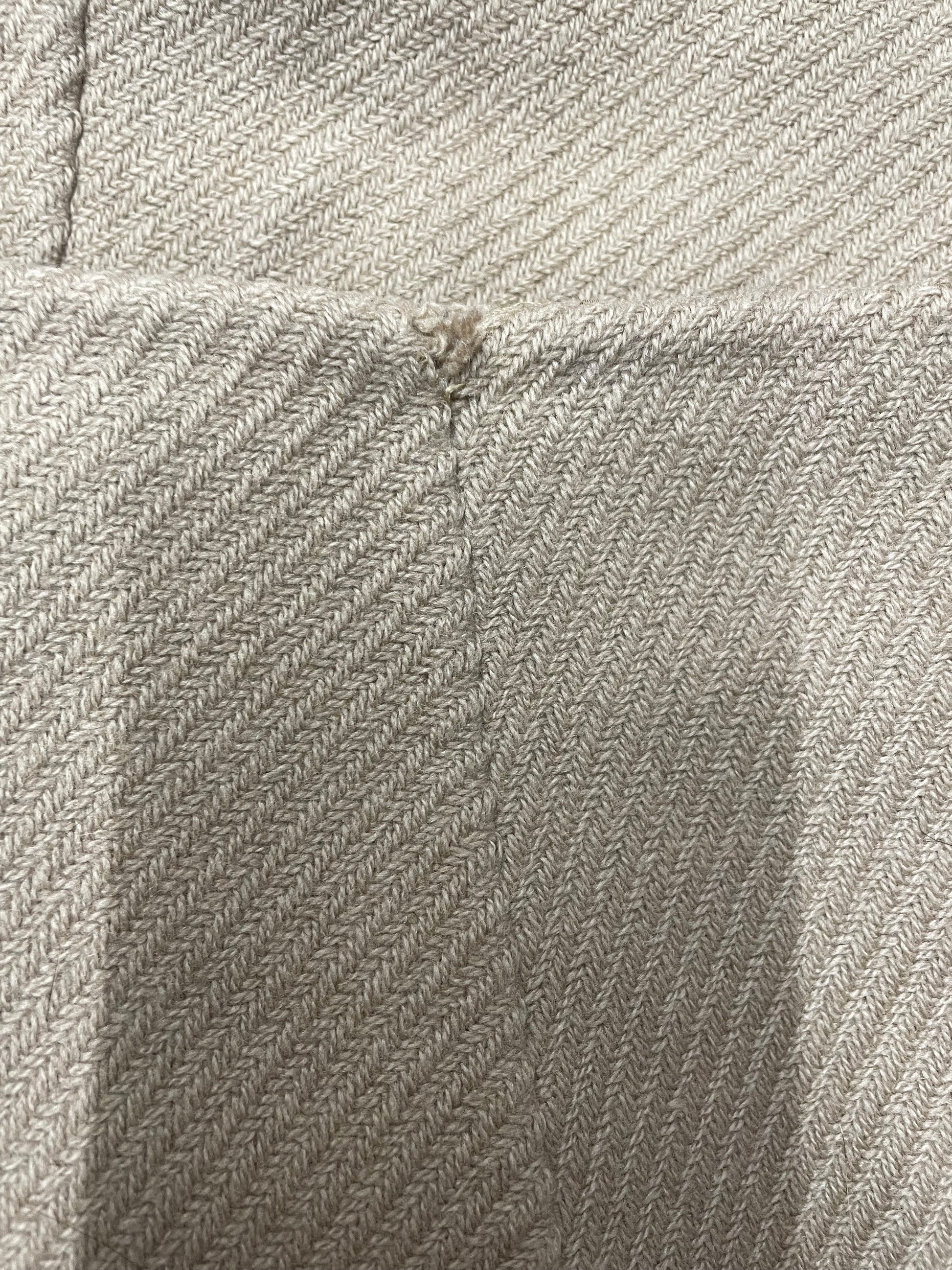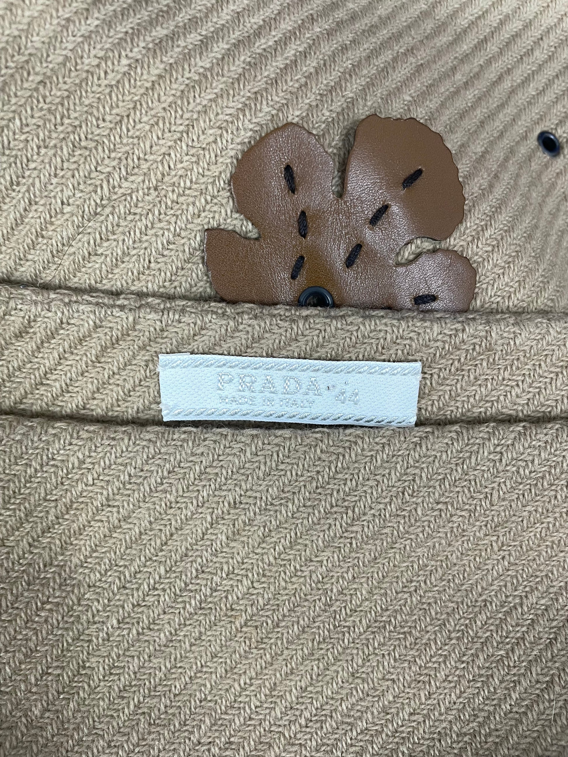 Wool with leather applications. Size IT 44, best fits a size L. Wear on hip.