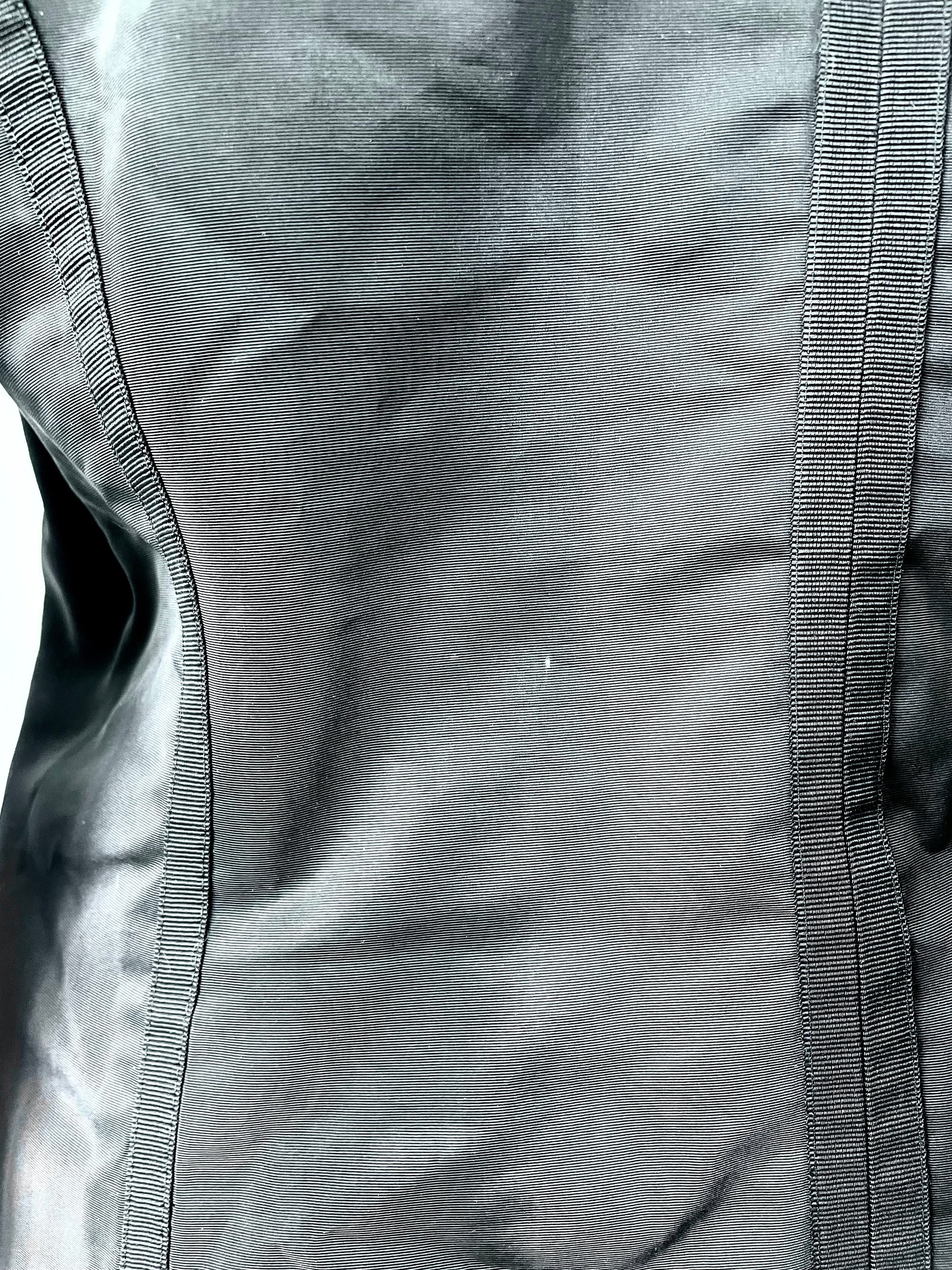 Acetate and polyester with silk lining. Size XXL. Two small white stains on back as seen in last photo.